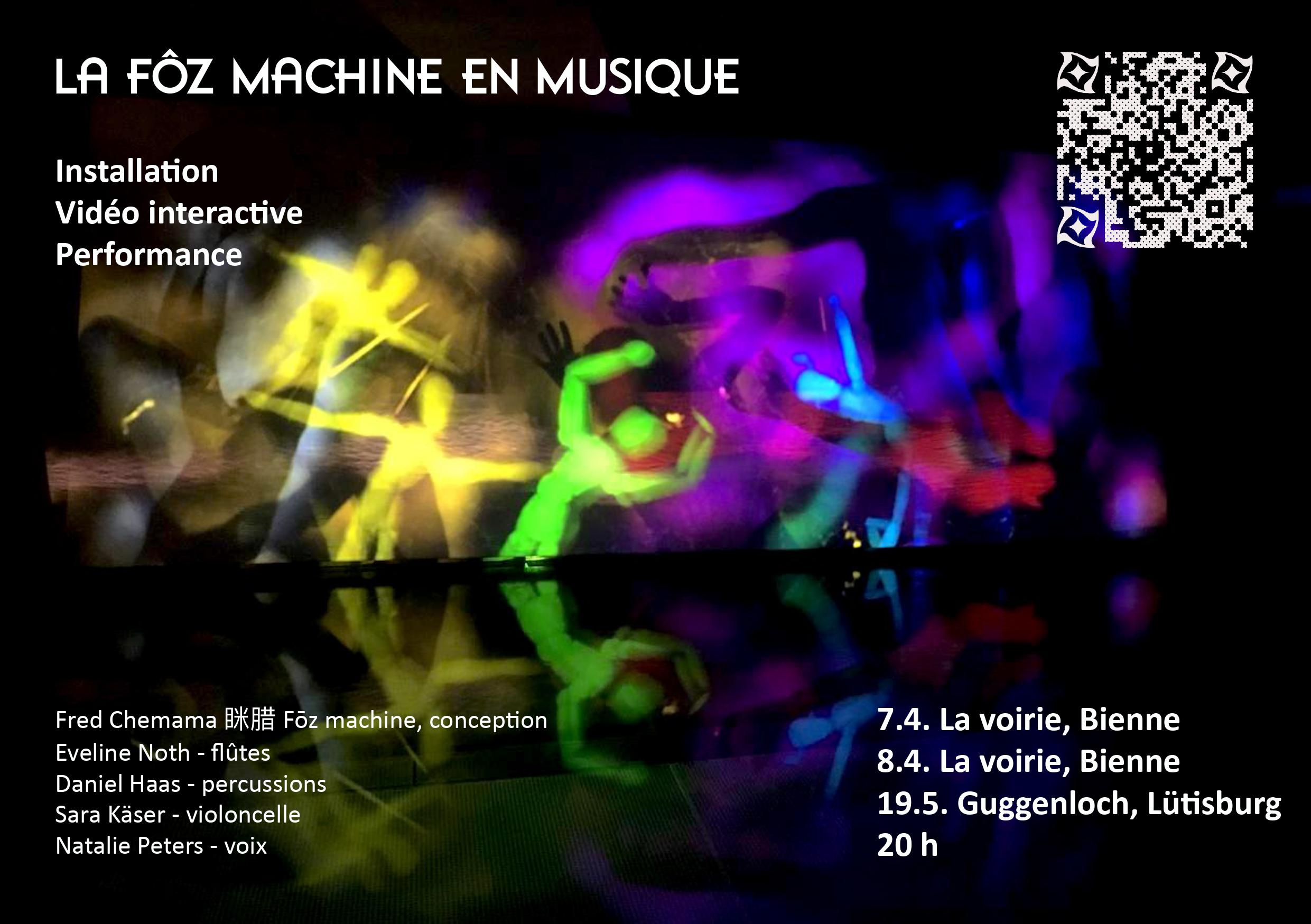 Pendant la performance, Fred Chemama 眯腊, (mira) fait naître des récits photographiques sous forme de projections lumineuses sur les murs de la Voirie. Les musiciens et musiciennes se tiennent d’une part en portrait, font donc partie de l’image et tissent leurs sons avec les histoires visuelles qui se forment en direct. Le public fait également partie de l’installation vidéo interactive. La performance s’adapte à chaque nouveau lieu. Les contenus et la musique se développent à chaque instant, en fonction des êtres qui habitent l’installation.