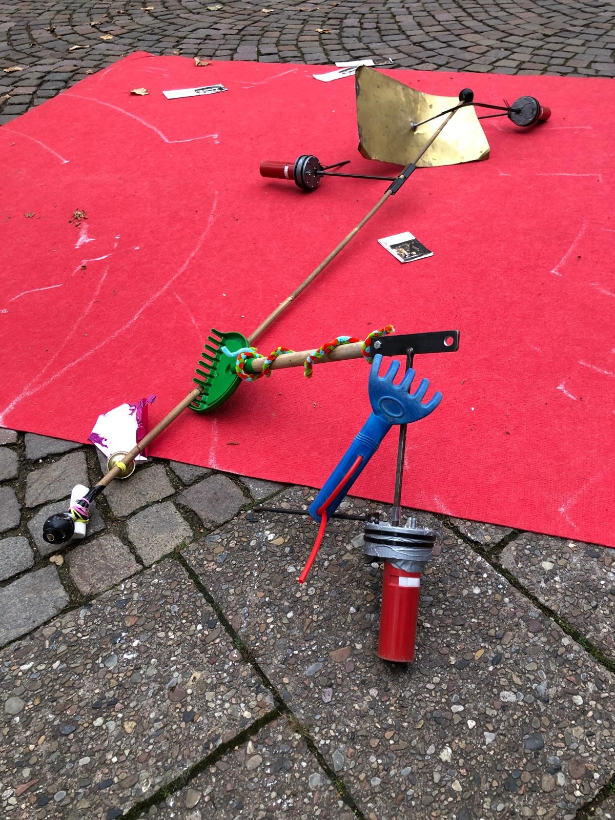 Les objets les plus divers peuvent être collés, attachés ou fixés à un petit moteur. Enfants et adultes pourront découper, percer, scier, marteler et visser en toute liberté. Il s’agit de mettre en mouvement ces objets uniques. Une danse se crée dans l’espace, composée de différentes formes personnelles rappelant des animaux.