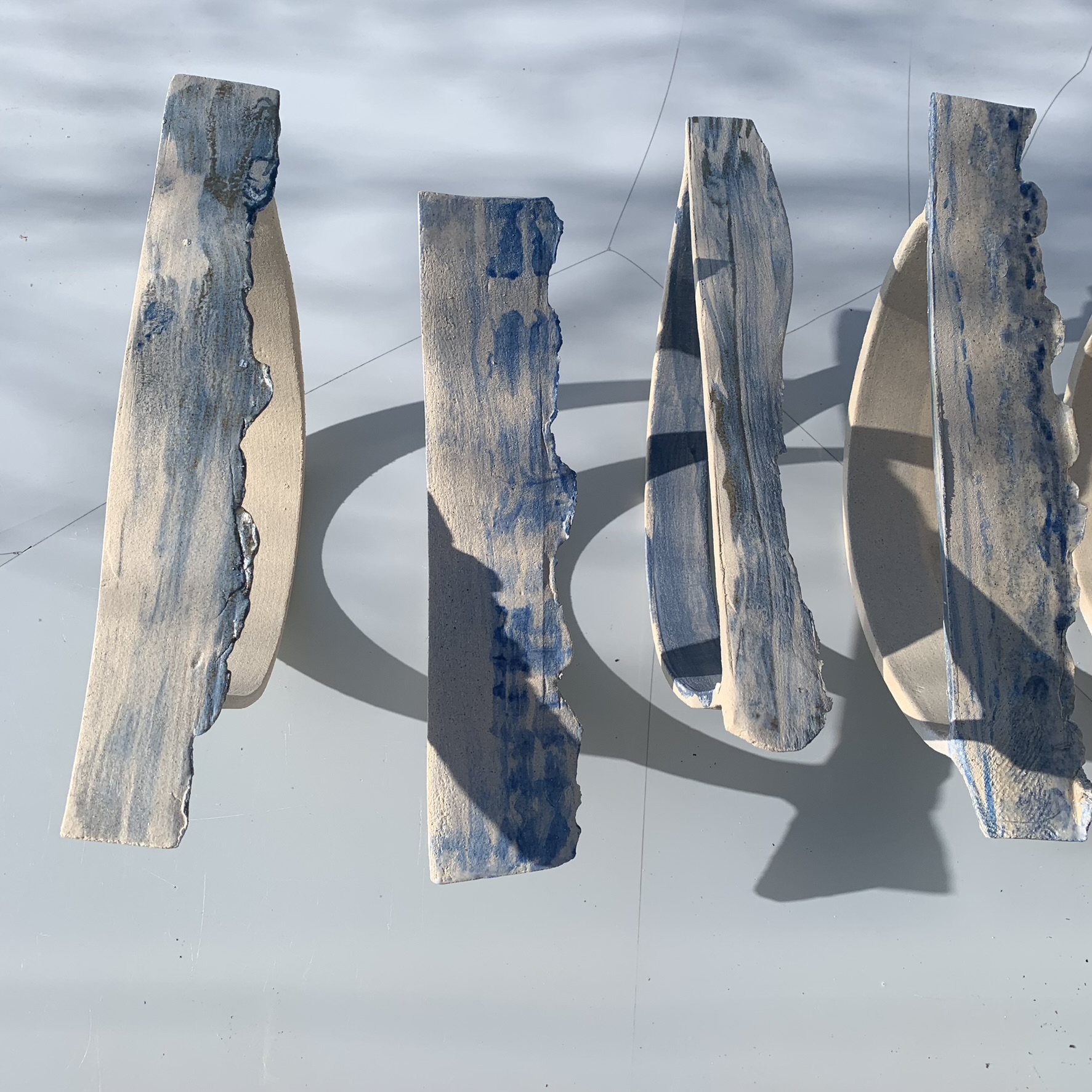 Des variations autour du thème des rivages avec des vagues qui les atteignent. Nicole Siron s’inspire des espaces frontières entre différents matériaux, animés par des mouvements qui sont à la fois des lieux de départ pour les vacanciers et des lieux d’arrivée pour les migrant.e.s. D’autre part, les vagues, fragiles et éphémères s’échouent et disparaissent, désignant un miroir d’émotions qui habitent les hauts et les bas de nos vies… L’artiste souhaite faire émerger les jeux des réflexions et la dynamique incessante entre vie intérieure et vie extérieure.